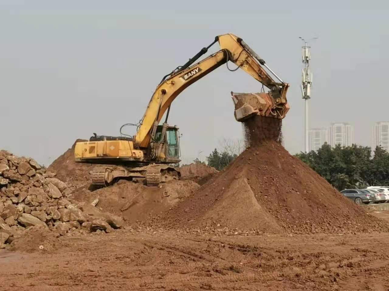 污染土壤修復治理現場(阿魯斗設備正將污染修復土壤進行破碎篩分工作)