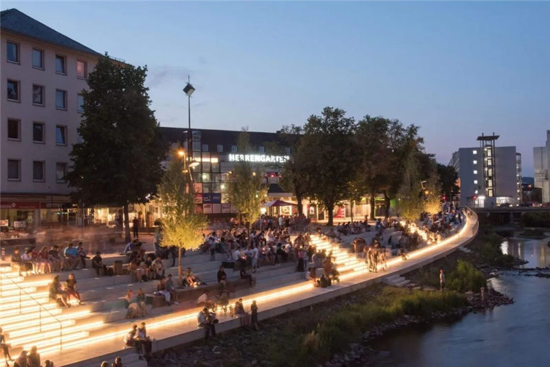 隨著河流的復興,180米長的新“Siegtreppen”,重新設計進一步的廣場,長廊和橋梁在附近的勝利贏得了Siegen它的城市中心在河背上。 清晰可讀和慷慨的自由空間結合了居民對城市生活和“綠色”娛樂的多方面要求,與水元素直接接觸。