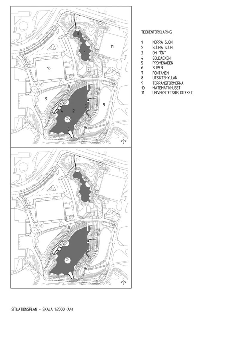 建筑師Klas Anselm在場地上排布了十幾棟建筑;簡約的紅磚建筑星星點點的散布在斜坡上,位置相當偏僻。學校相關部門相信學校會快速發展,這些單棟的建筑將會得到擴張,最終縮短建筑之間的距離。確實,學校是得到了發展和成長,但也還沒有發展到各個單元之間能產生有效聯系的程度,這會讓校園看起來是美麗的,但卻缺少互動。顯然,校園內缺乏的是能夠豐富社會生活的一種“密度”。
