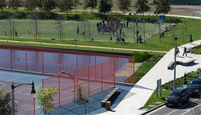 該中心公園面積大約為9英畝,其中的公共區域也是應有盡有,包括幾個小型的運動場,游樂園,足球場,幾個植物小花園,水景和一個殼形的演奏臺。完工后的公園已然成為了該社區的焦點,人們喜歡茶余飯后來到這里散步閑談,仔細品味公園的藝術美和享受生活的樂趣。而且,設計團隊十分注重人造景觀與自然景觀的和諧,每個區域都可以直觀的看到美麗的自然環境。