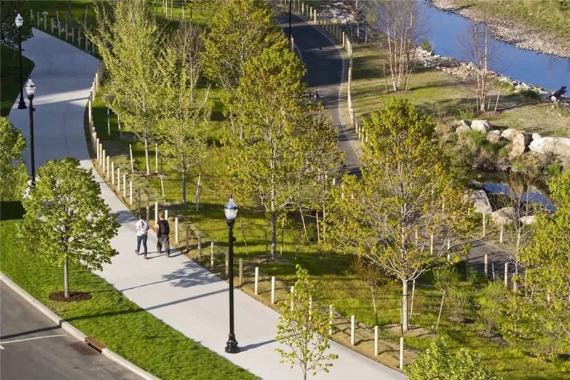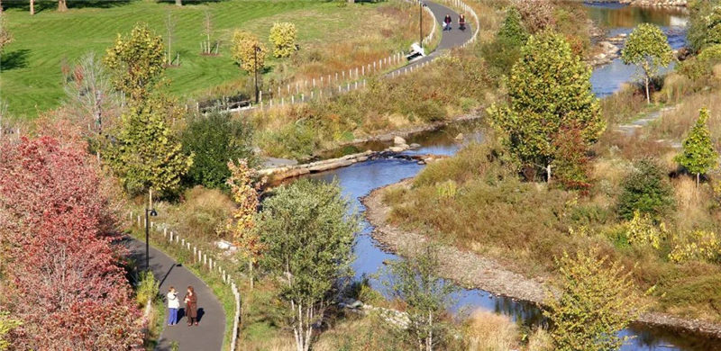 而改造之后的公園則滿布青翠、生機勃勃,使得康涅狄格州的生態及社會結構得到了優化。在與工程師及生物學家的通力合作下,團隊所設計出的景觀不但修復了水陸生環境,更通過修復渠道般的河流減少了洪水泛濫,同時也引入了數百種新型本土植物。