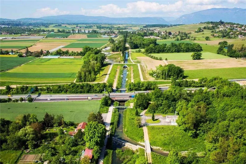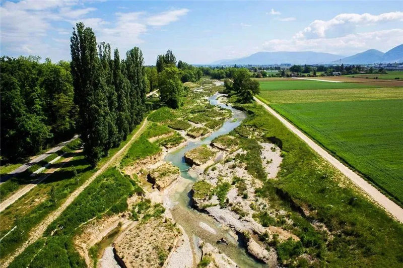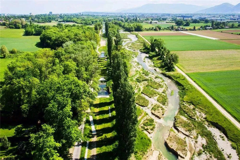 臨近日內瓦市的Aire河流經歷史悠久的農耕村落。這條河道從19世紀末期開始就逐步被改為運河。日內瓦市政府于2001年發起一場競賽,旨在將河道恢復到初始蜿蜒曲折的自然形態。競賽簡介的文本更偏向生態方面,僅僅重視環境改善的合理需求,而忽視了任何設計價值與考量。自然與文化被置于完全相反的兩個極端。