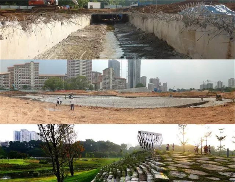 2006年,新加坡國家水務局PUB發起的活躍、美麗和凈水(ABC)計劃——將不再具有排水和供水功能的國家水體改造成活躍的新空間,用于社區融合和休閑娛樂。作為急需的公園改造升級以及改善運河能力計劃的一部分,這個新設計將看似相反的需求結合起來。打破混凝土渠道和建造自然水道的方案也是第一次在新加坡設計。